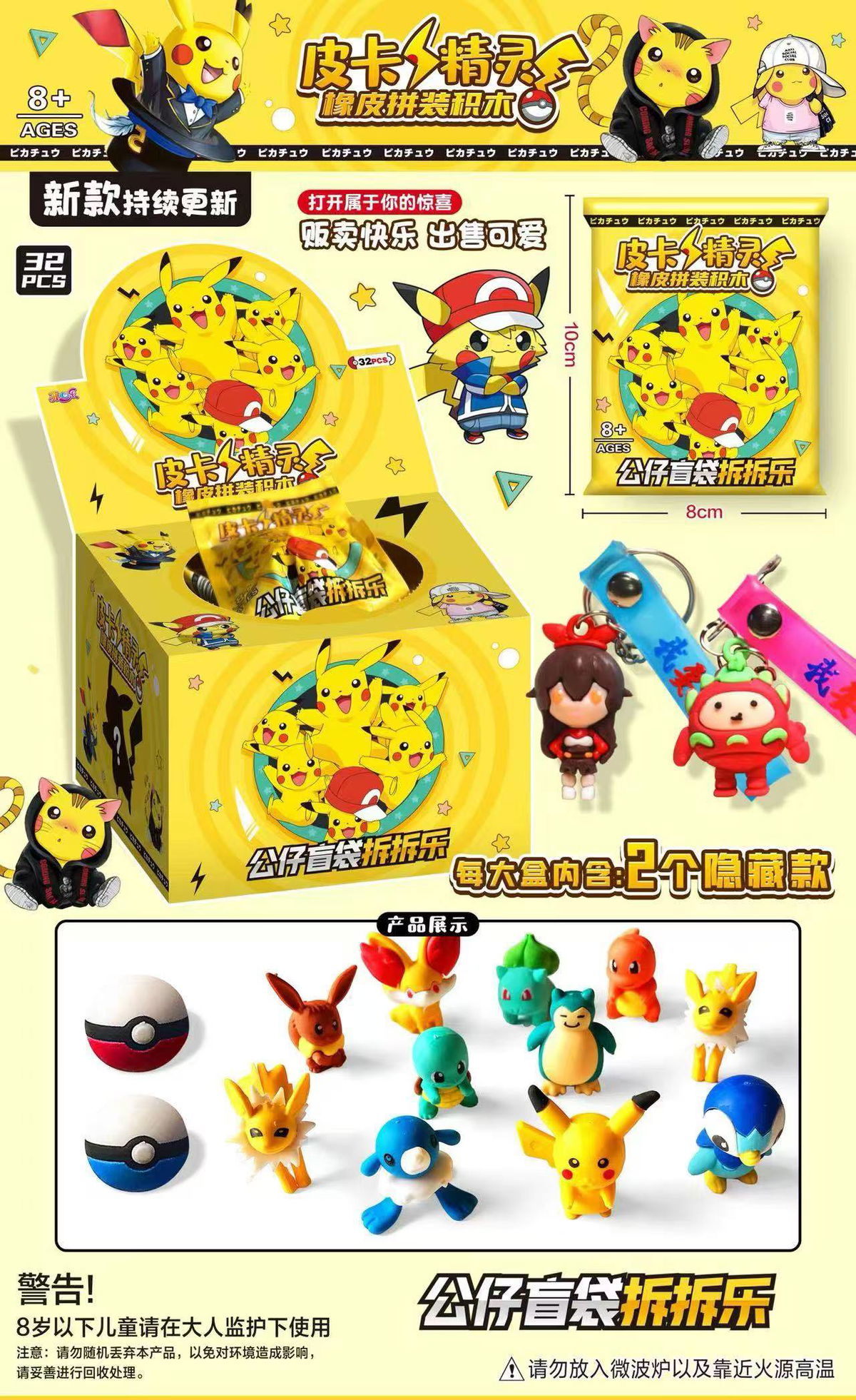 Mini Llavero Sopresa x Caja 32U Pikachu